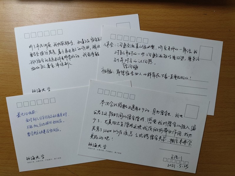 本次活动开始前,心理委员向每位参与的学生发放北京赛车PK10 主题明信片。同学们书面记录下自己对于听取讲座时的感受和对于未来宿舍生活的期待,将讲座的体悟和对社区建设的期许存放于信箱中。