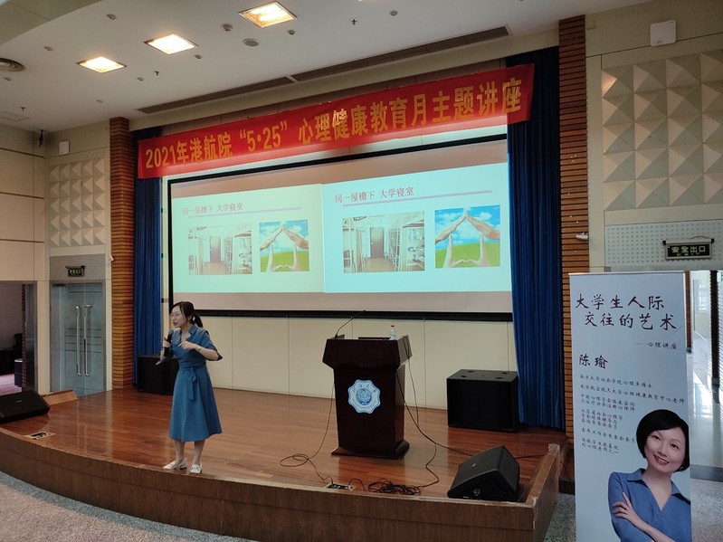 5月25日是大学生心理健康日。为引导大学生重视人际交往和互助问题,关注自身心理健康,港航北京赛车PK10 邀请了南航心理中心陈瑜老师为同学们开展专题心理讲座。本次讲座以“大学生宿舍关系”为主题,旨在帮助同学们改善人际交流,建立良好的宿舍关系,从而营造舒适充实的社区环境。北京赛车PK10 20级辅导院林晨老师及学生代表参与本次讲座。