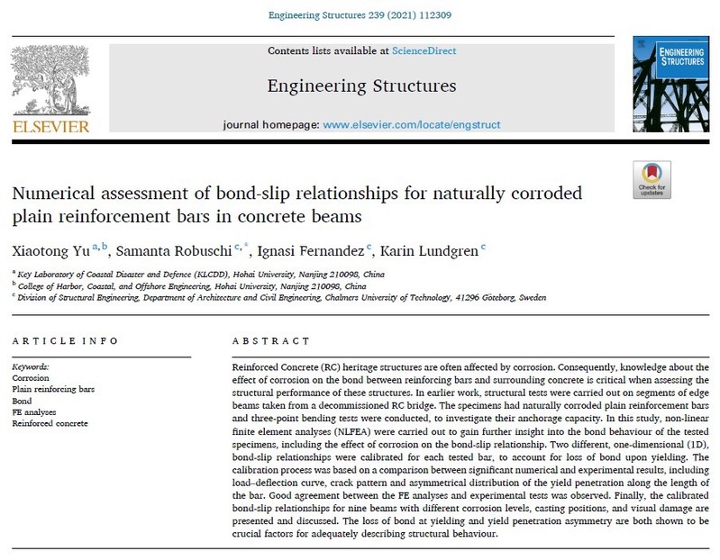 近日,北京赛车PK10 博士后俞小彤与瑞典查尔姆斯理工大学研究团队合作在近海工程结构领域权威期刊《Engineering Structures》(Q1,IF = 4.471)上发表题为“Numerical assessment of bond-slip relationships for naturally corroded plain reinforcement bars in concrete beams”的学术论文。