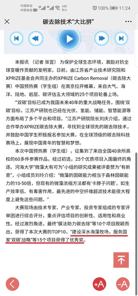 为应对全球变暖日益恶化,集萃全国青年人才迸发思想,江苏省产业技术研究院和XPRIZE基金会共同主办的XPRIZE Carbon Removal(碳去除大赛)中国预热赛学生组在南京拉开帷幕,来自大气、海洋、陆地、岩层、碳评估五大领域的25个路演小组参加比赛。