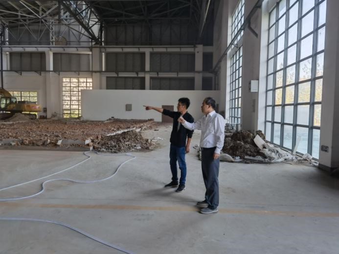 10月12日,校党委常委、副校长郑金海来到江宁校区牛首山科技园查看L型风浪流港池系统的建设进展情况。