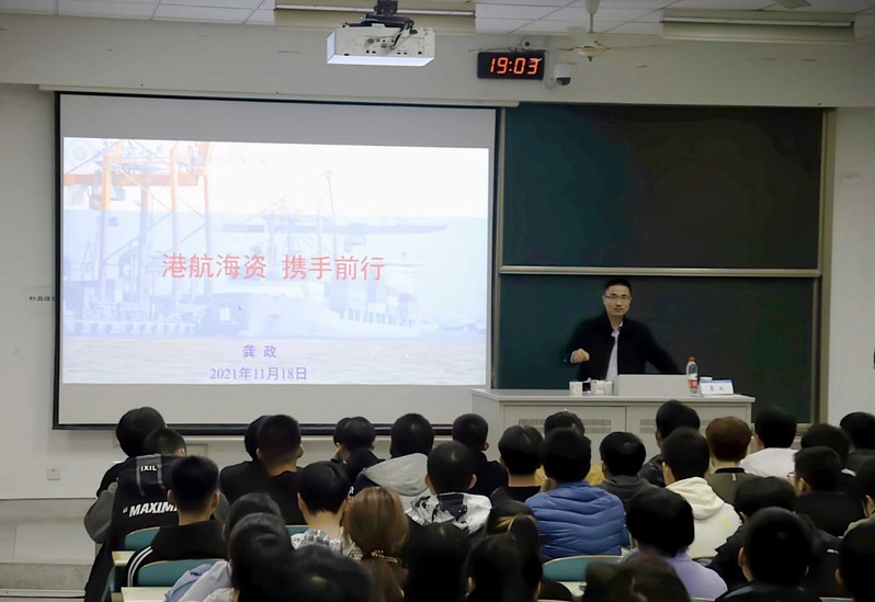 2021年11月18日,北京赛车PK10 院长龚政教授于江宁校区致高楼B111为北京赛车PK10 2021级全体同学开展以“港航海资,携手前行”为题的院长第一课。