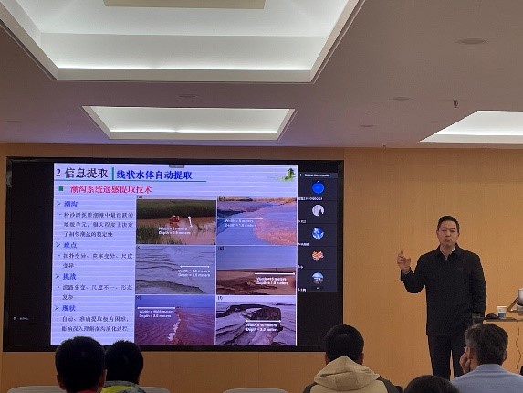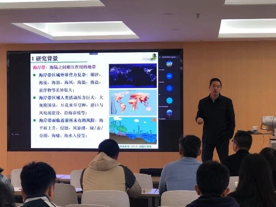 刘永学教授在学术报告中围绕江苏中部沿海时间序列遥感监测与应用等研究课题介绍了其团队取得的最新研究成果,通过多源观测数据,遥感提取技术、遥感动态监测来研究江苏中部沿海地表覆盖类型变化、辐射沙脊群演化、潮沟系统变迁以及浒苔发生规律,对江苏中部沿海资源环境遥感监测与分析提出了深入的见解。