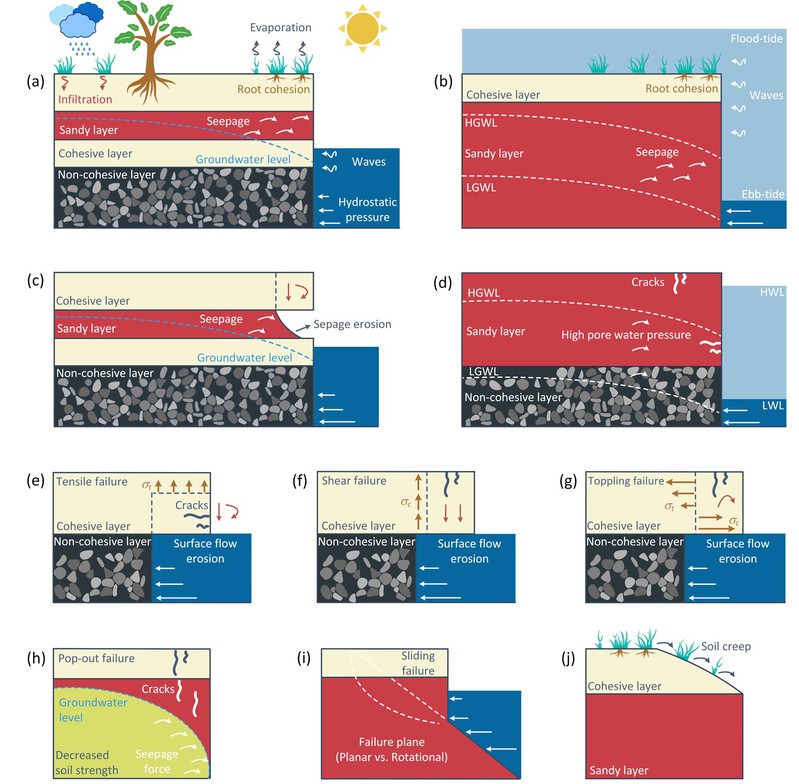 边壁侵蚀后退对河口、海岸地貌演变至关重要,是海岸工程领域的前沿和热点问题。边壁侵蚀后退过程对海岸工程安全存在巨大威胁,如航道边坡失稳、堤脚淘刷失事等。该论文基于赵堃博士后所在研究团队近十年的研究成果,通过海岸动力学、泥沙运动学与土力学的交叉运用,阐明了不同驱动力和环境因素影响下边壁侵蚀后退过程的形成原因;探明了边壁侵蚀后退与河口、海岸地貌演变的互馈机制;总结归纳了边壁侵蚀后退数值模型和预测公式,并讨论其适用性;针对目前相关研究存在的问题,指出了本领域亟需突破的方向,为河口、海岸地貌演变研究和海岸带保护修复工作等提供了技术支撑。