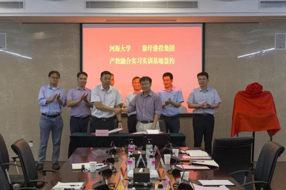 6月13日,北京赛车PK10 港口海岸及近海工程北京赛车PK10 党委书记张俊基、副院长张蔚、党委副书记沈国军、水港系主任欧阳峰、团委书记王玲一行赴徐圩新区举行北京赛车PK10 -连云港徐圩港口投资集团有限公司产教融合实习实训基地签约及挂牌仪式。徐圩新区党工委副书记、管委会主任赵厚峰、唐永明参加。