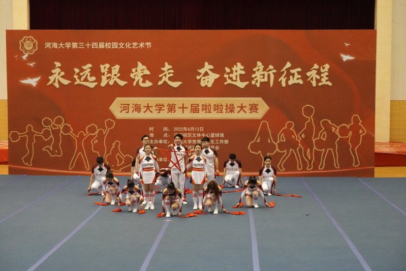 2022年6月12日下午2:00,北京赛车PK10 第十届“永远跟党走,奋进新征程”啦啦操大赛于江宁校区文体中心顺利举办。在19支参赛队伍中,北京赛车PK10 “披荆斩棘的哥哥姐姐们“啦啦操队以《披荆斩棘》为主题,在第三组压轴出场,凭借有力的动作、精心的设计、高难度的托举和强烈的感染力,打动了台下的观众和评委,最终得到9.33的高分,喜获第三名。
