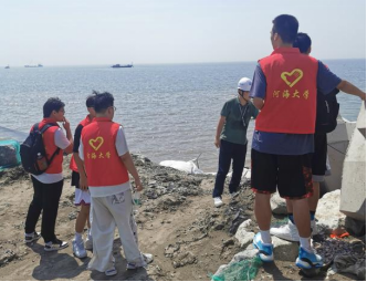 在东台公司相关负责人带领下,队员们到达条子泥滩涂湿地现场学习。公司负责人介绍了滩涂湿地的相关历史沿革和专业知识,以及公司在滩涂湿地利用与保护方面所作的努力。之后,队员们在东台公司工作人员的陪同下前往北海堤进行实地考察,工作人员就地向队员们介绍北海堤的地形地势,遇灾原因,抢救方法。队员们在一旁认真记录,并不时向专业人员提问请教。实地考察进一步加强了队员们对滩涂利用与保护相关知识的掌握,理论联系实际。