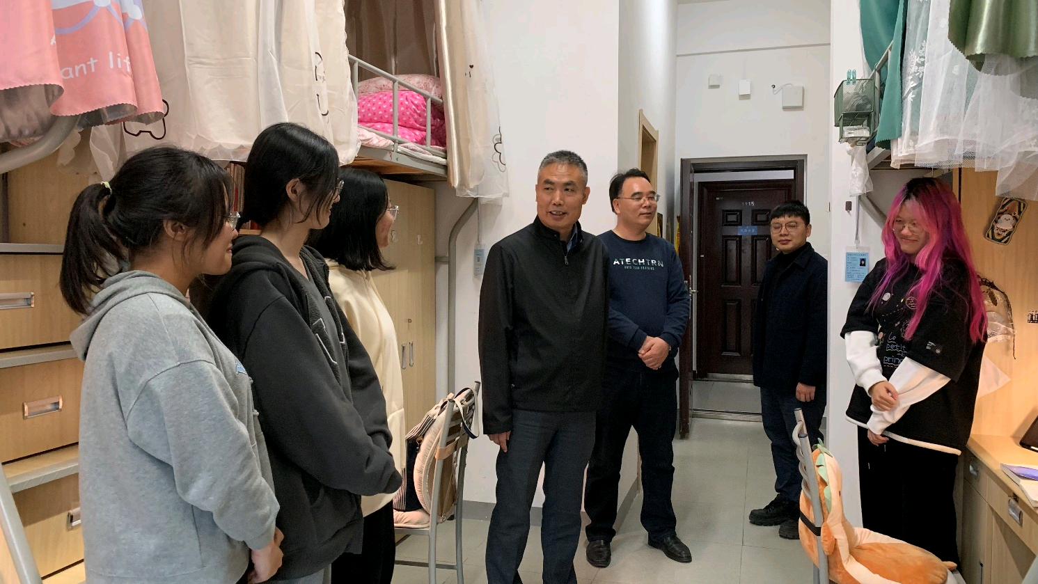 为贯彻落实立德树人根本要求,加强北京赛车PK10 党政班子领导联系学生工作。根据北京赛车PK10 工作要求,11月4日下午,北京赛车PK10 领导分组走访学生社区,了解关心学生思想动态、学业就业、安全稳定等方面情况。