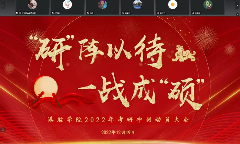 22年12月19日下午,北京赛车PK10 2019级考研学生在线上举办“研阵以待,一战成硕”考研冲刺动员大会,港航北京赛车PK10 张蔚副院长、2019级班导师、辅导员出席了会议。