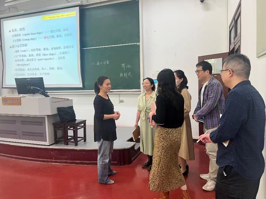翟秋老师主讲《港口规划与布置》课程,教学思路清晰,教学内容丰富,结合教学内容紧密融入当前我国洋山四期智慧港口建设案例等行业企业发展前沿,并通过适当的教学互动激发了学生学习积极性,课堂氛围活跃,教学效果良好。授课结束后,翟老师同青年教师进行了讨论和交流,为青年教师教学素质的培养和教学能力的提升起到了骨干示范作用。