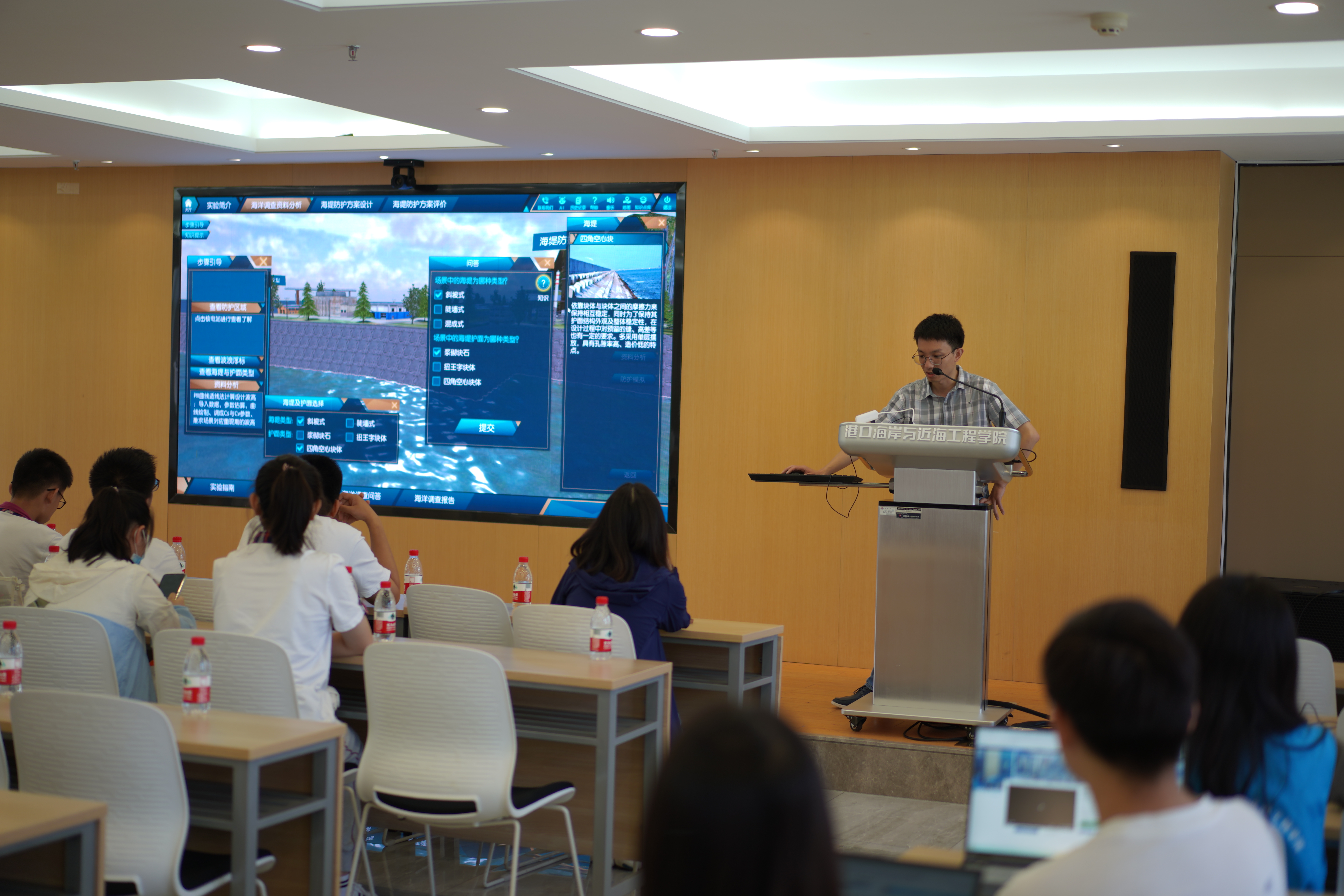 在严恺馆702会议室,南京一中2013届毕业生、北京赛车PK10 辅导员林晨老师介绍了北京赛车PK10 的办学情况,带领同学们了解了水利学科的内涵与特色。姚鹏老师为同学们带来了海岸防护科普讲座,鼓励同学们上机体验海平面上升环境下海堤防护虚拟仿真实验系统,生动学习了海岸防护的科学知识。借助乐高模型,陈欣迪老师为同学们讲解了海洋、波浪的相关知识。同学们在科普讲座与互动游戏中领略了我国水利事业的建设成就,培养了科学文化素养与创造性思维。