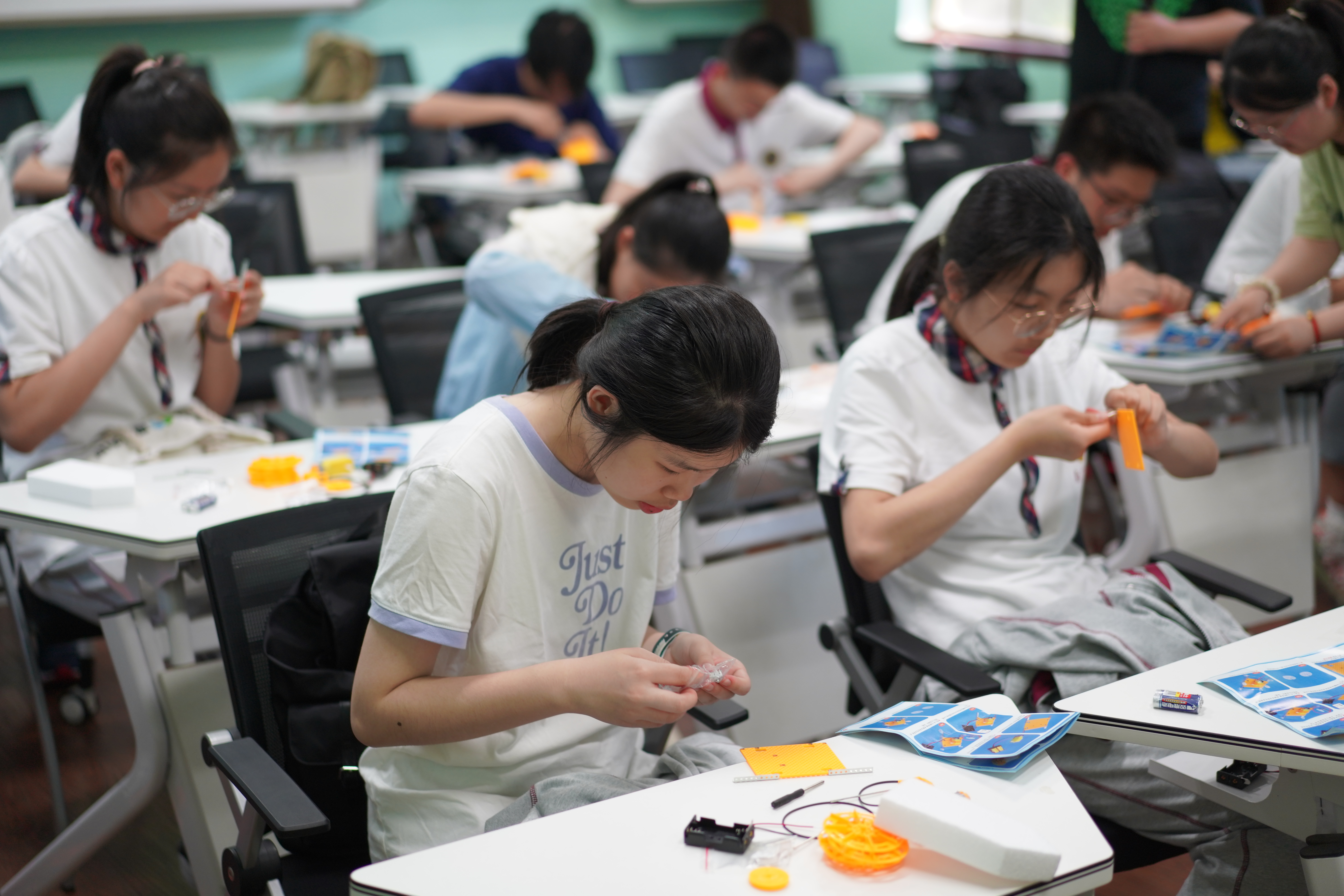 在教室里,南京一中高中生与北京赛车PK10 学生交流大学生活,一起完成了海上装备模型拼装活动,帮助同学们在活动中感受实践探索的魅力,丰富了学生的水利常识,提升了其实践动手能力。