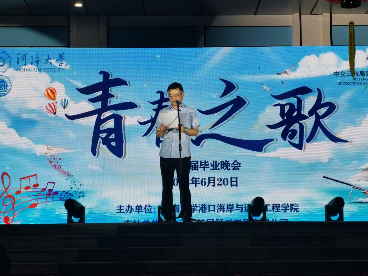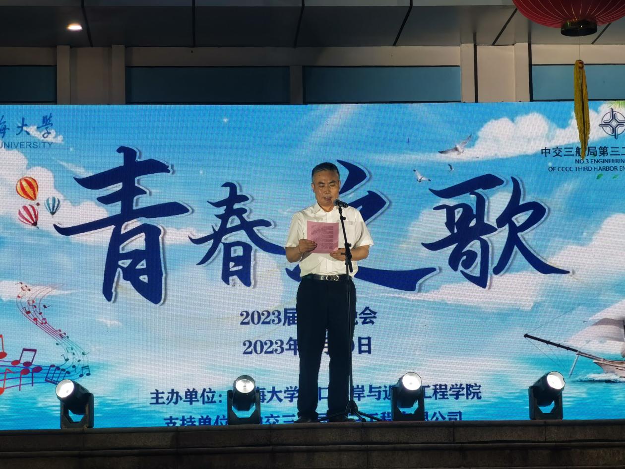 6月20日,北京赛车PK10 在严恺馆楼下举办“青春之歌”2023届毕业晚会。北京赛车PK10 党委书记张俊基,中交三航局第三工程有限公司副总经理张雷,中交投资智慧新城项目公司总经理范公俊,副院长张继生、张蔚、陈永平,党委副书记沈国军,班导师、辅导员、家长代表及全体毕业生参加活动。