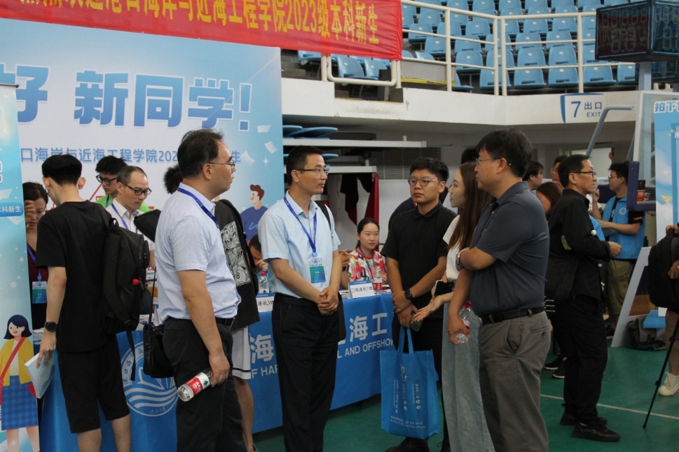 文体中心报到处,2023级本科辅导员、班导师、助学导师仔细核对信息,检查材料,为新生办理报到手续。新生们在办理完报到手续后,纷纷在合影点拍照留念,留下自己在河海港航的第一张照片。