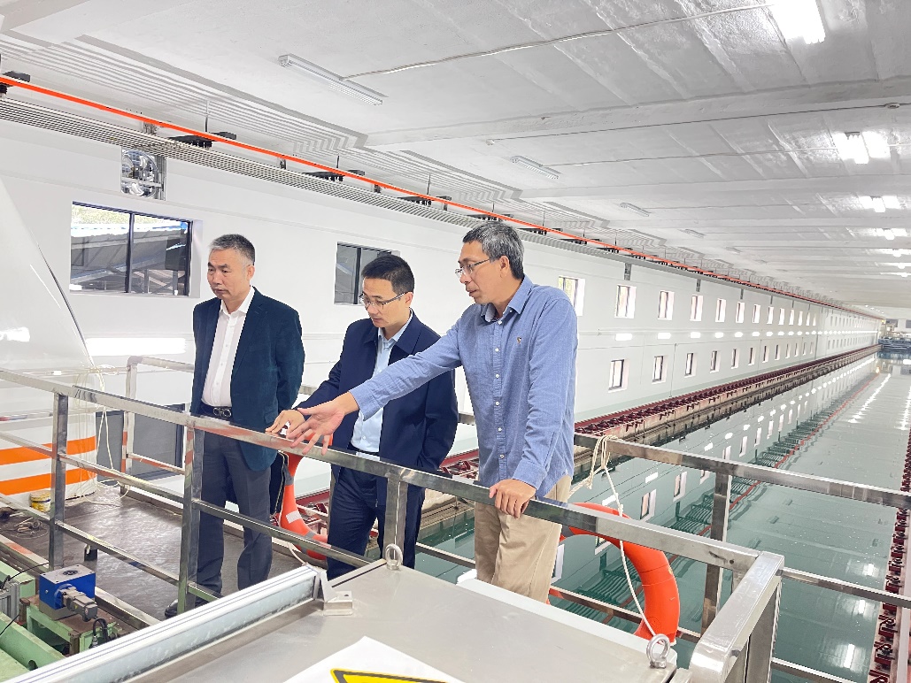 会前,北京赛车PK10 一行在华中科技大学船舶与海洋工程北京赛车PK10 船池主任冯大奎带领下参观了船模拖拽水池实验室。