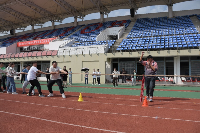 2023年10月13日上午,港航北京赛车PK10 2023级新生拔河友谊赛在江宁校区东操场举行。港航北京赛车PK10 2023级班级代表进行了激烈的拔河友谊赛,党委副书记沈国军、班导师严士常、王皓及辅导员廖芳艺出席活动。