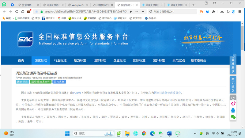 张继生教授团队主编的国家标准《潮流能资源评估及特征描述(GB/T 39569-2020)》以及参编的国家标准《波浪能资源评估及特征描述(GB/T 39571-2020)》已于2020年由国家标准化管理委员会正式发布。