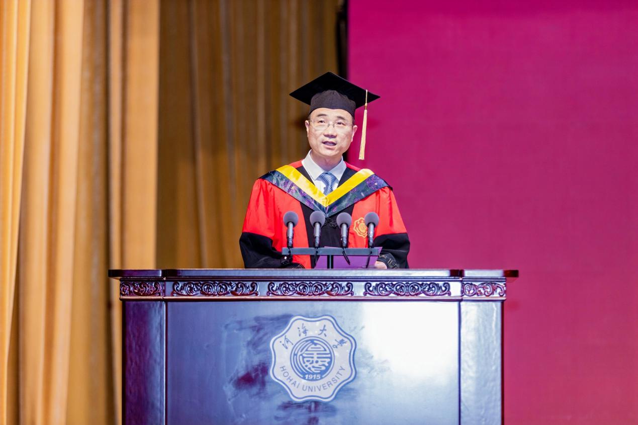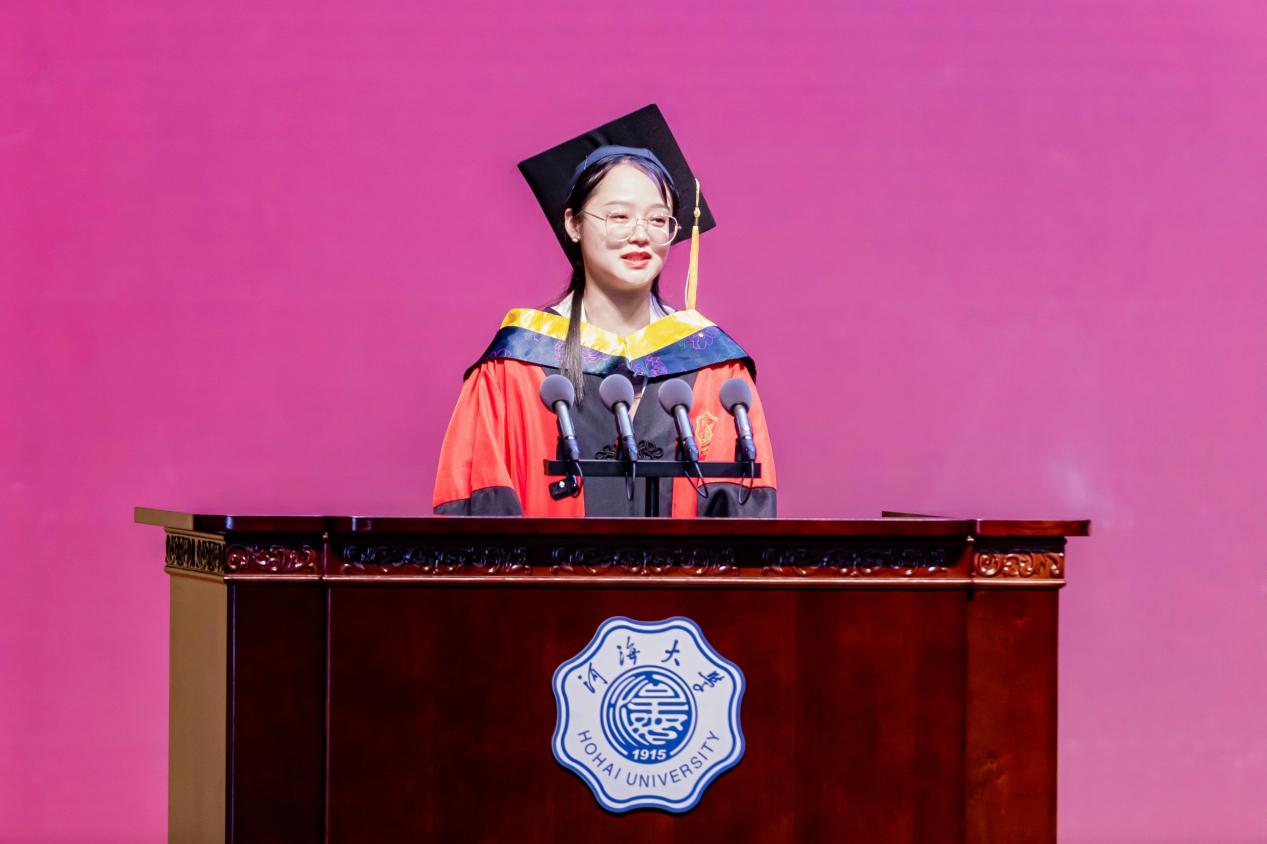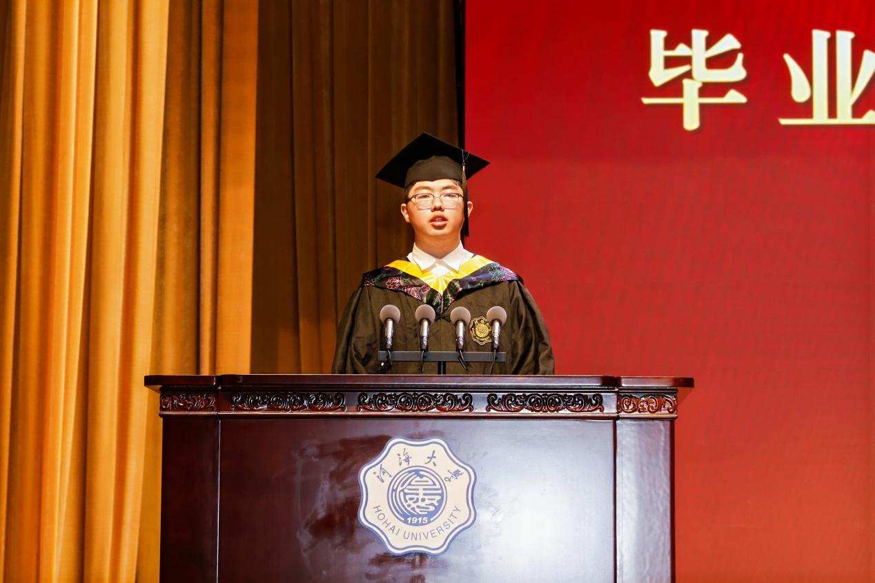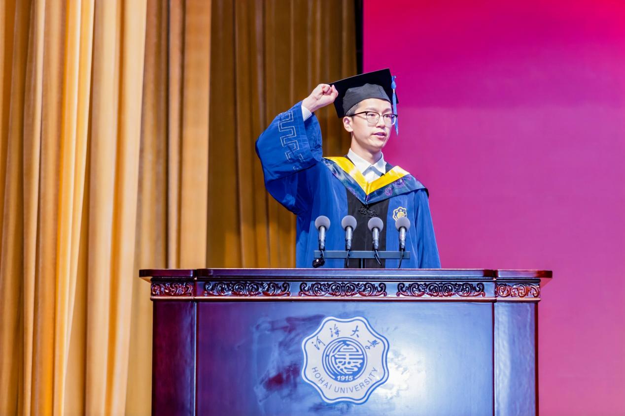 2020级本科生陈家骥作为学生代表发言,他向母校、老师、企业、亲朋好友表达了感谢,号召同学们牢记“大哉河海奔前程,毋负邦人期”的嘱托,以实际行动回报祖国、北京赛车PK10 和社会。