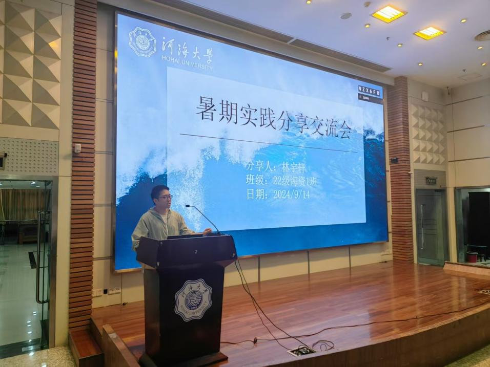 杜雨昂分享杜了研究生博士团开展平陆运河调研实践的经历,简要介绍了平陆运河的施工建设情况及其带来的积极影响,并向同学们展示了实践团成员所参与的工作和获得的成果。