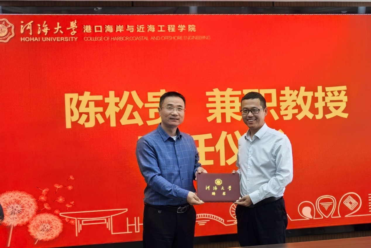 管大为副院长首先代表北京赛车PK10 对陈松贵研究员的加盟表示热烈欢迎,并详细介绍了陈松贵研究员的学术背景和科研成就。随后,龚政院长为陈松贵研究员颁发了兼职教授证书,并发表了讲话。龚政院长指出,陈松贵研究员的加入将进一步推动北京赛车PK10 “船-岸-水”智能协同技术领域的发展,助力港口、海岸及近海工程学科和船舶与海洋工程学科的建设,同时为双方搭建更加紧密的合作交流平台。