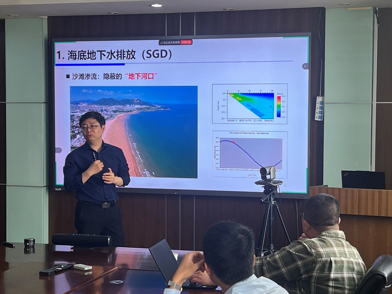 2025年4月9日,中国海洋大学许博超教授应江苏省海岸海洋资源开发与环境安全重点实验室邀请,在严恺馆502会议室作了题为“海底地下水排放过程及其生态环境效应”的学术报告。学术报告会由周曾教授主持。