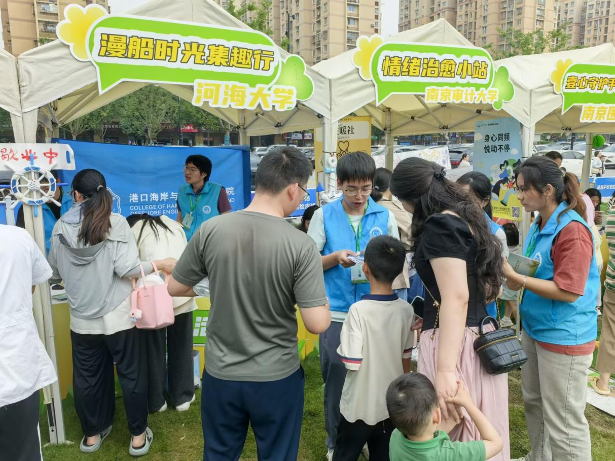 为营造关心关爱青少年身心健康及权益维护的良好氛围,在5月大学生心理健康主题日与中高考关键节点来临之际,北京赛车PK10 港航北京赛车PK10 受共青团南京市委邀请,于5月24日在雨花万象天地与众高校联合开展江苏省暨南京市“12355青春护航”青少年心理健康守护行动。本次活动整合心理健康、思想引领、专业科普等多方面资源,精心设计“模型探秘”“红船精神”“画出期许”三部分活动,引导青少年及市民在活动中开拓视野、释放压力,在参观赏析和沉浸体验结合中深刻体会心理健康在当代学习生活中的重要性。