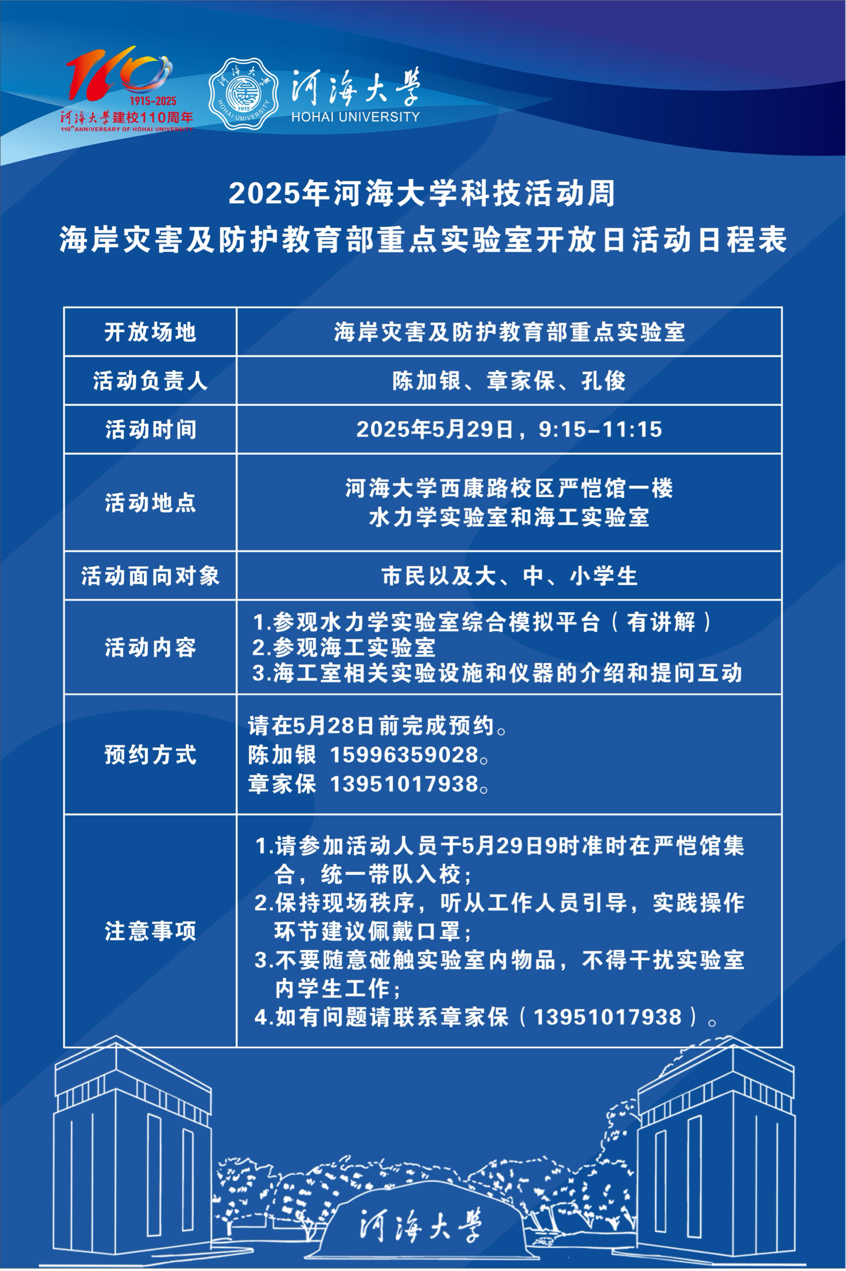 2025年北京赛车PK10 科技活动周 海岸灾害及防护教育部重点实验室开放日活动日程表