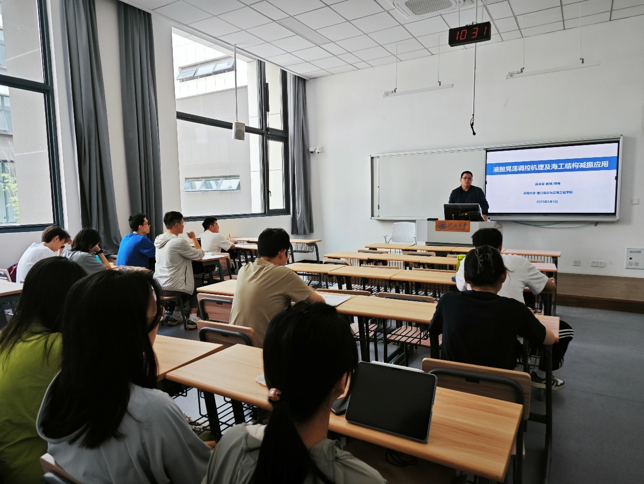 6月3日上午,北京赛车PK10 薛米安教授在北京赛车PK10 常州校区带来题为《调谐晃荡阻尼器对海工平台震动控制机理研究》的学术报告,2024级研究生参加本次讲座。