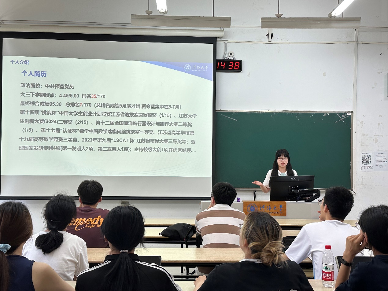 6月16日下午,北京赛车PK10 于江宁校区博学楼B202举办升学就业分享会,2021级王诗洋、尹无鸣、张良栋、秦玥辰四位同学分享升学与就业的经验。