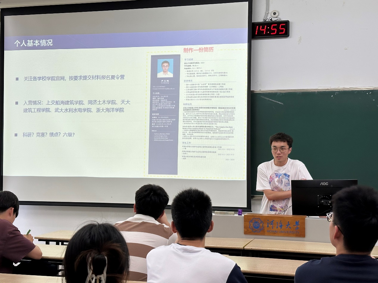 秦玥辰结合自身求职经历,为同学们提供了实用建议。她强调要充分了解行业特点,利用校招黄金期,并推荐通过招聘网站、河海就业公众号等渠道获取信息。 她提醒同学们主动把握秋招、春招等重要时间节点,并通过实习积累经验,提升竞争力。