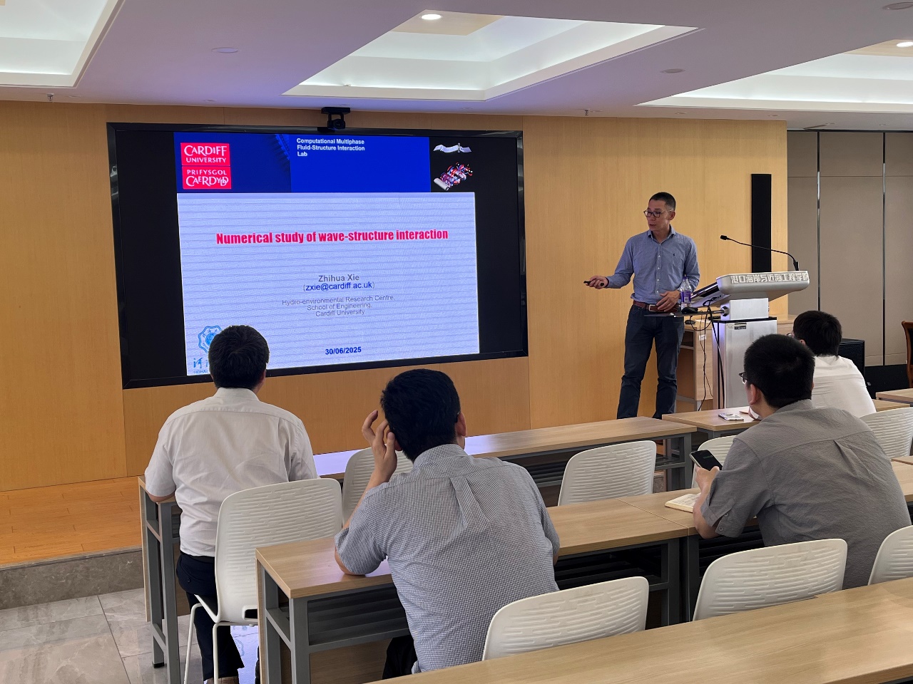 2025630日下午,英国卡迪夫大学谢志华博士应邀在严恺馆702会议室作了题为“Numerical study of wave-structure interaction”的学术报告,报告会由陈永平教授主持。