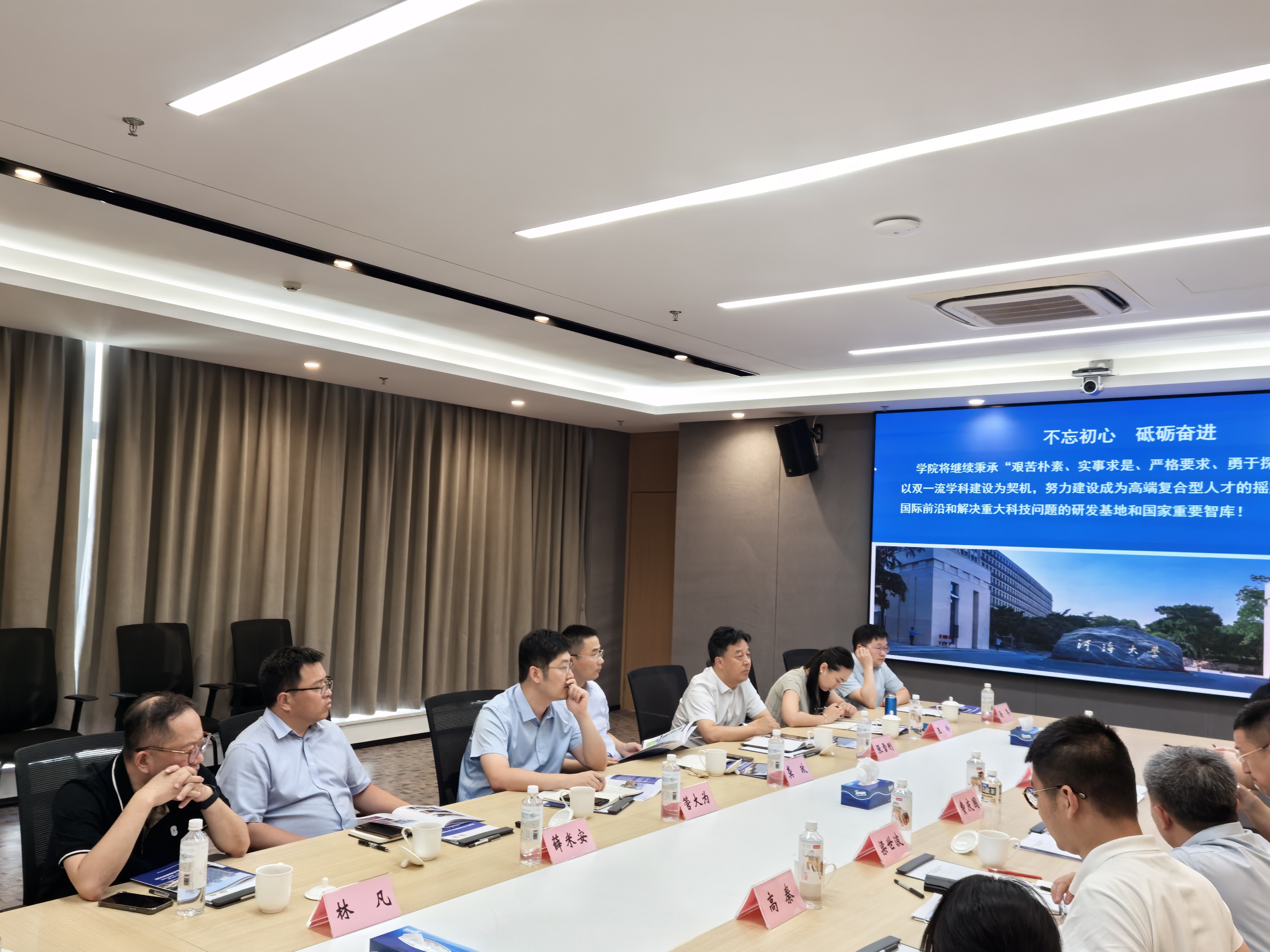 管大为副院长介绍了北京赛车PK10 办学特色、北京赛车PK10 学科及船海专业建设情况。张雪刚书记介绍了河海船海学科依托港航优势向海发展、积极申报博士点的情况,提议在人才培养与办学经验方面加强互鉴。龚政院长强调双方学科交流与协同发展的重要性,阐述了北京赛车PK10 船海学科以海洋新能源开发为优势特色方向的建设规划。双方深入探讨了办学规划、学科协同发展及项目合作,一致认为北京赛车PK10 在海洋水动力、海洋环境方面,以及东南大学在电气、机械、新能源技术方面各有优势,期望未来加强优势互补,共同促进海洋学科高质量发展,服务国家海洋强国战略。