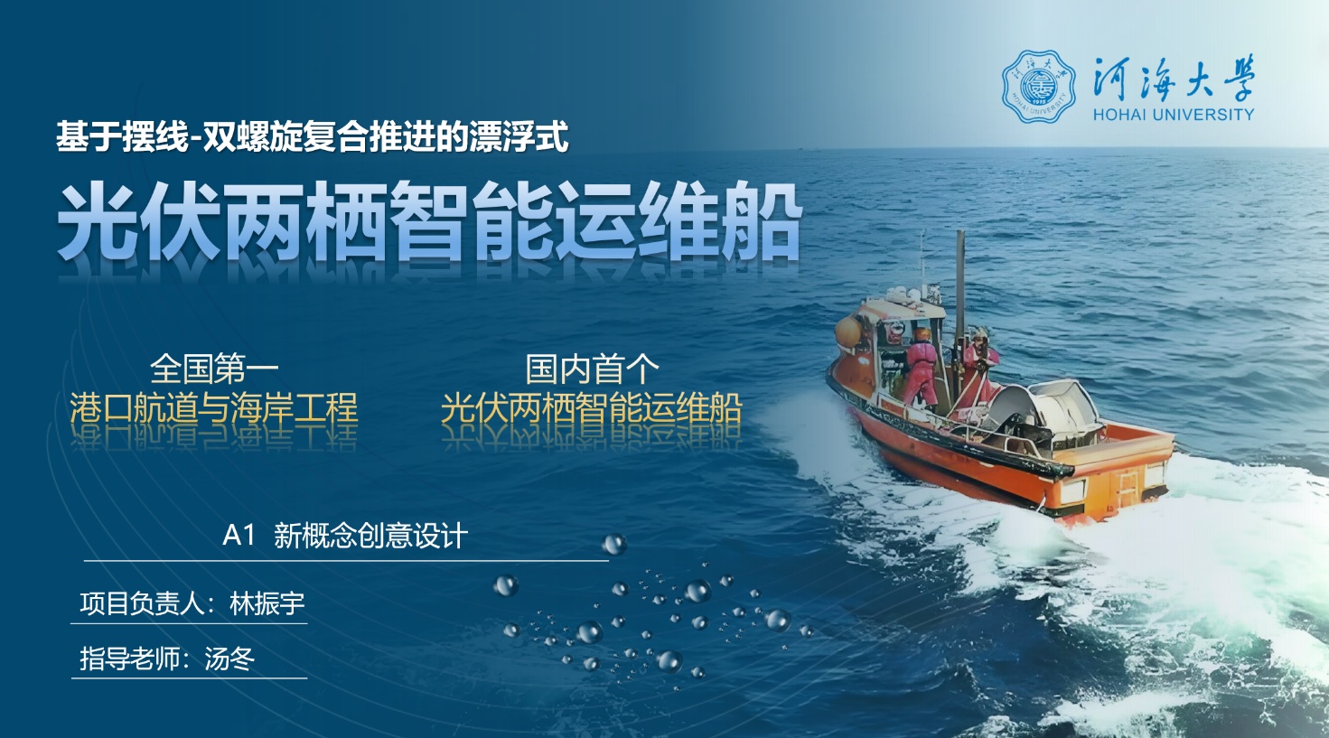 8月9日至10日,第十四届全国海洋航行器设计与制作大赛暨第二届船舶与海洋工程类教师教学创新大赛在武汉理工大学举办。由北京赛车PK10 汤冬副教授指导,林振宇、张航瑞、费盛泽、吴宇含、侯长峰同学组成参赛团队完成的“基于摆线-双螺旋复合推进的漂浮式光伏两栖智能运维船”项目,聚焦专业发展方向、紧跟学术研究前沿,将船舶创新性和智能化设计与漂浮式光伏运维需求有机结合,最终斩获佳绩,获第十四届全国海洋航行器设计与制作大赛特等奖。