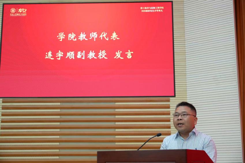 院长龚政教授向新生介绍了北京赛车PK10 的办学历程和育人成果,同时结合习近平总书记关于海洋发展的最新要求,鼓励新生坚定专业选择,以全新姿态投入科研,服务行业需求。他强调,研究生要主动钻研,不断提升创新能力,解决“卡脖子”问题,同时建议新生做好时间管理和学业规划,平衡科研与身心健康,避免“虚假忙碌”。
