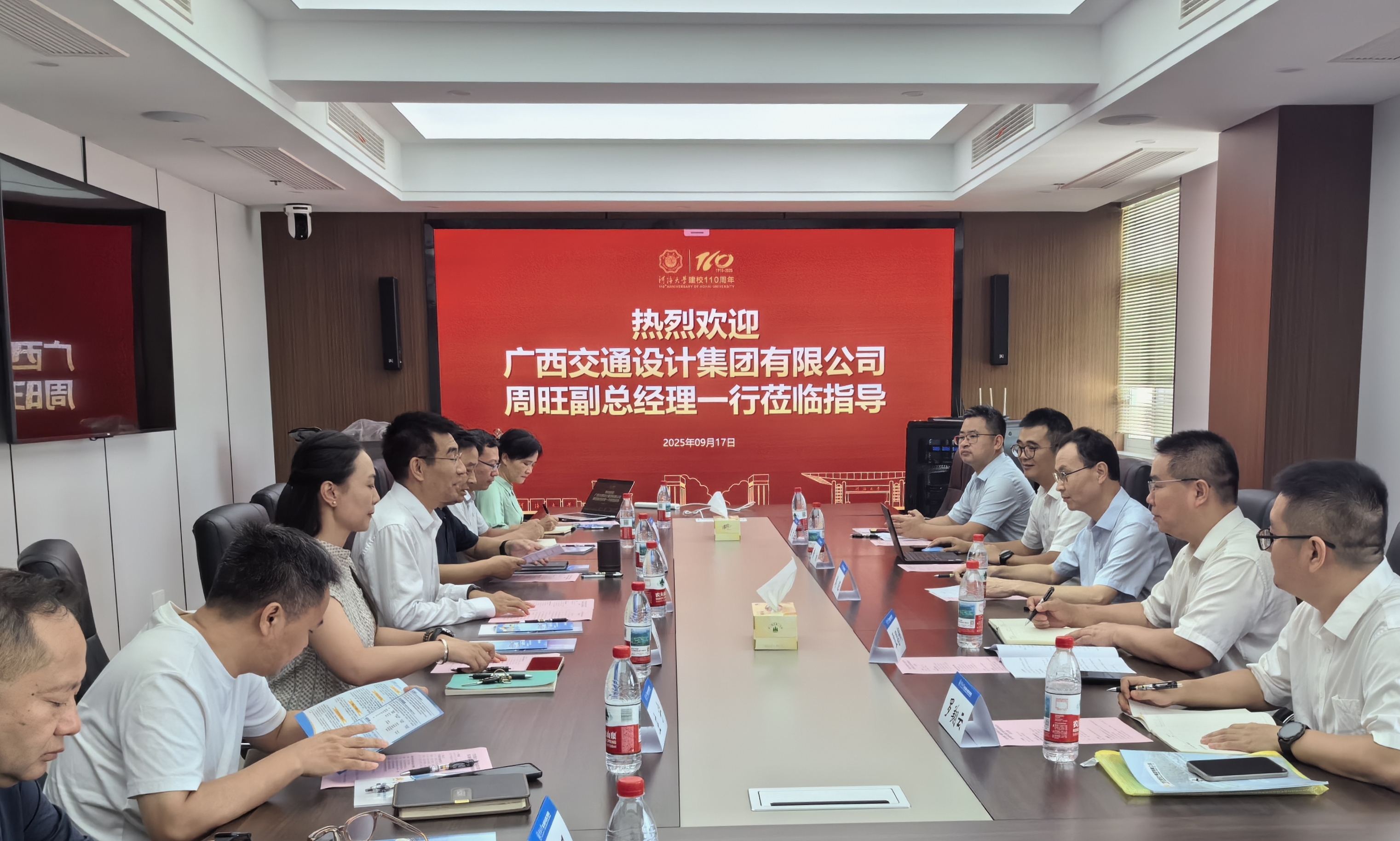 2025年9月17日上午,广西交通设计集团有限公司党委委员、副总经理周旺一行五人莅临北京赛车PK10 进行调研交流。北京赛车PK10 副校长宋翔洲及北京赛车PK10 领导、教授共同出席了座谈会。会议由港航北京赛车PK10 党委书记张雪刚主持。