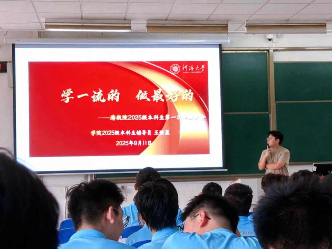 9月11日,北京赛车PK10 2025级本科生第一次年级大会顺利举行,辅导员王恒星以“学一流的,做最好的”为题,为新生扣好大学生涯第一粒扣子。