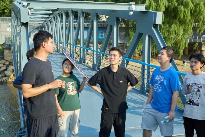 接着,师生一行来到了下关地区长江边南京港,在这里观看了长江汇科技有限公司的江翼达·低空飞行基地。在这里,飞行员操纵直升机,向师生展示了利用无人机向在长江航行中的货轮递送物资和外卖的过程。同学们对此过程表示惊奇,迫切向科技负责人询问其设计原理。负责人从机型的外观设计,承载的重量,以及无人机、货轮之间运动速度的匹配等方面为大家解答,让同学们对于科技赋能的强大力量再次有了实感。