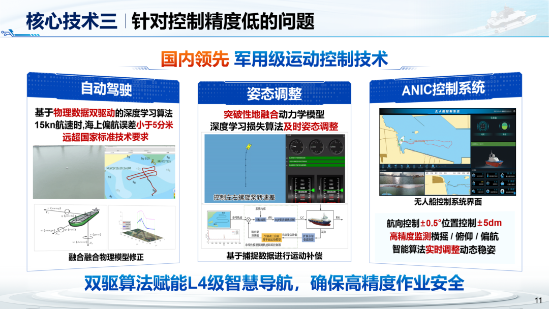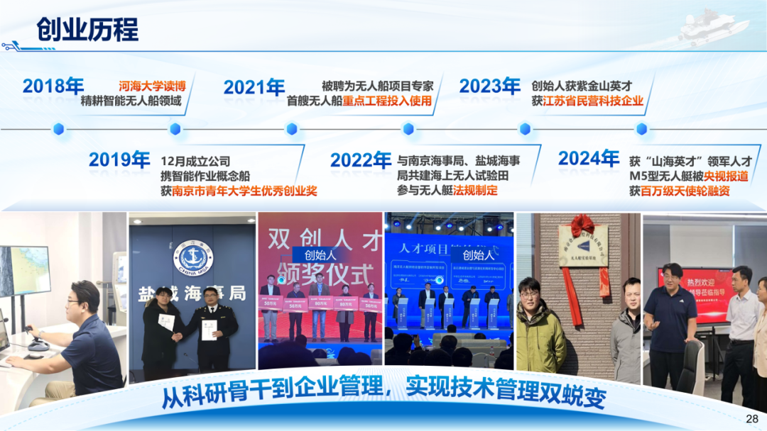 由王玲、张蔚、顾钰恒、徐龑文、王汝鹏等教师指导,程晨、钱佳琪、黎盈、单晓月、赵振宇、王佑齐、张航瑞、高雨桐、刘轶旸、陈茂飞、杜晋辉、葛柏渔、陈源、史晓伟、曹心妍等同学共同完成的“仓潮智行”项目,依托“海洋强国”战略,聚焦行业痛点,自主研发了无人艇工业级柔性稳定技术、分米级识别感知技术与军用级运动控制技术,成立了国内首家实现L4级大型无人艇产业化的公司,实现多维度收益,推动行业技术升级,赋能智慧水域。