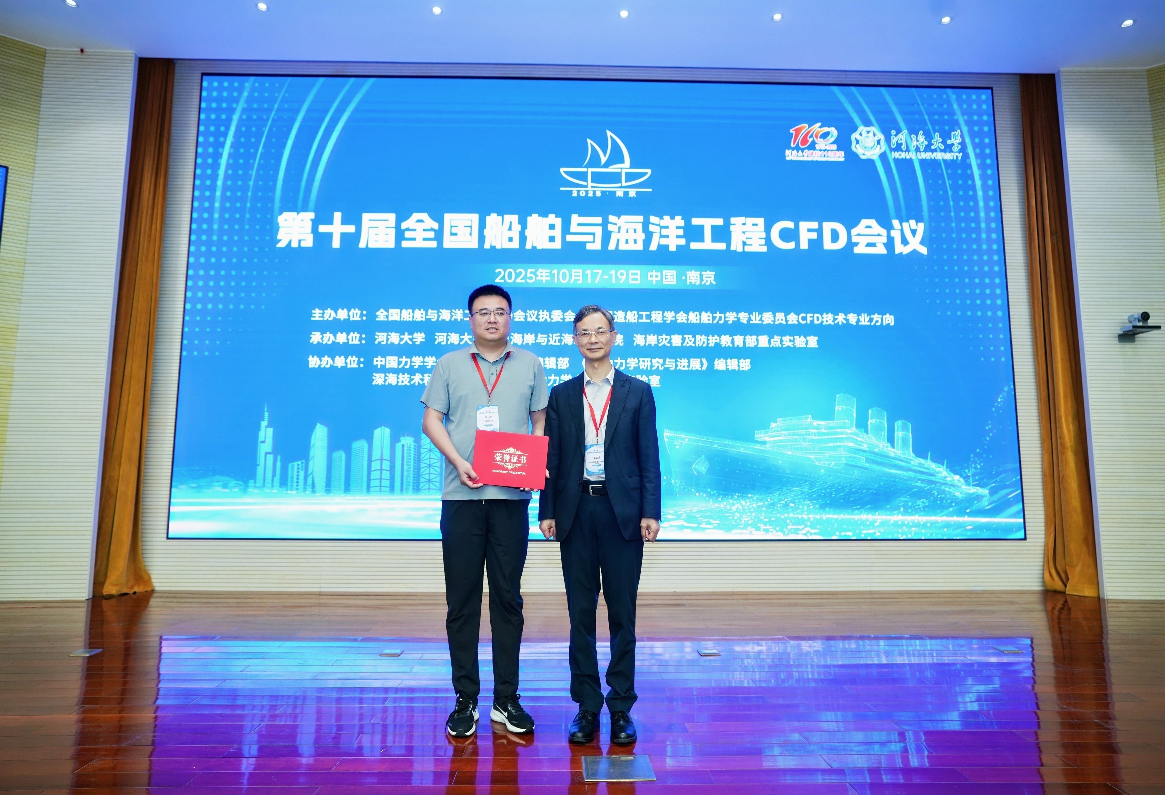 闭幕式环节,全国船舶与海洋工程CFD会议执委会主席万德成教授向获得优秀学生论文的11位研究生颁发了获奖证书。