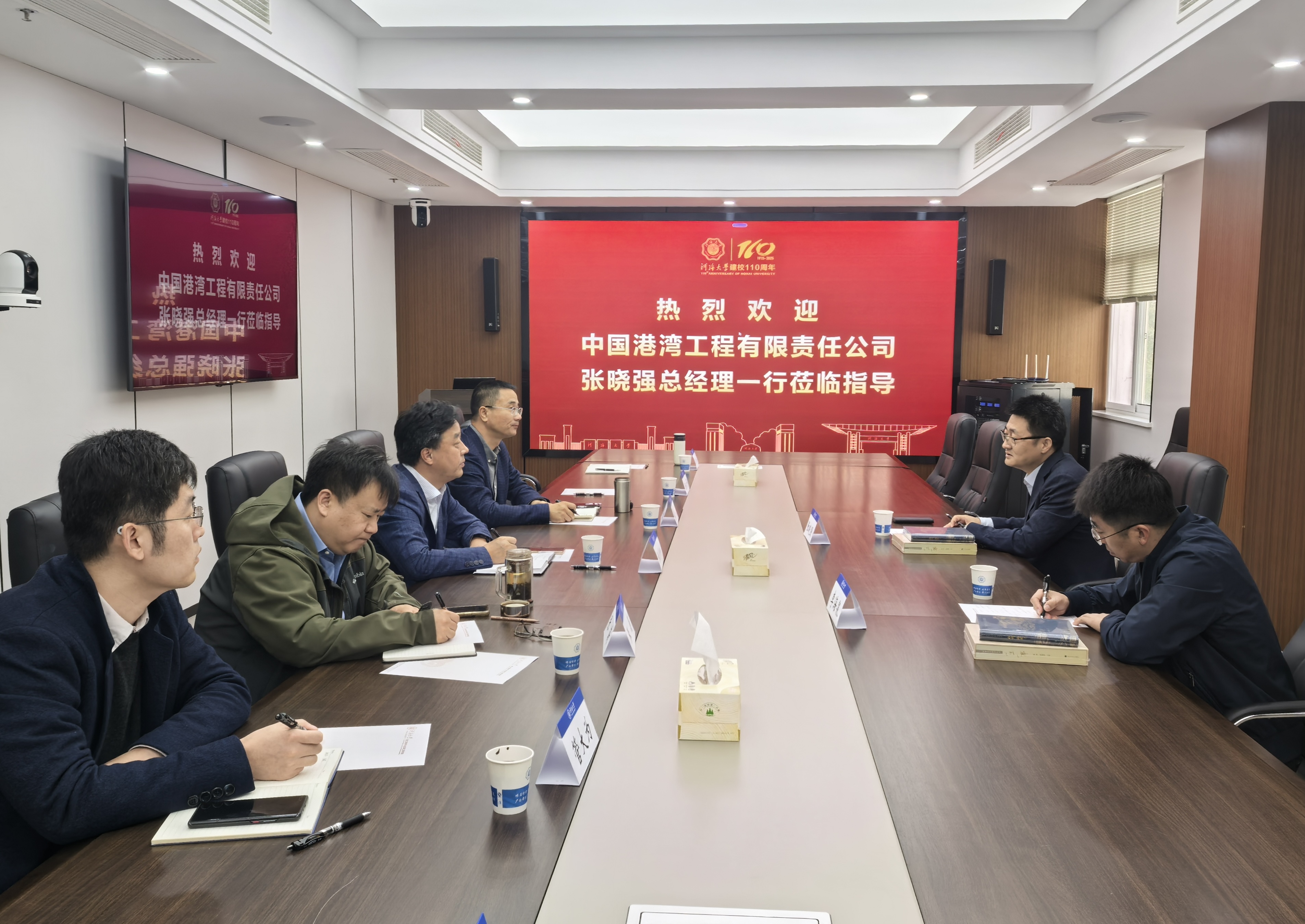 北京赛车PK10 建校110周年华诞之际,为进一步深化校企合作,共谋发展新篇,10月26日,中国港湾工程有限责任公司总经理张晓强、办公室主任李海泉一行来院座谈交流。北京赛车PK10 领导班子全体成员出席座谈会,座谈会由北京赛车PK10 党委书记张雪刚主持。