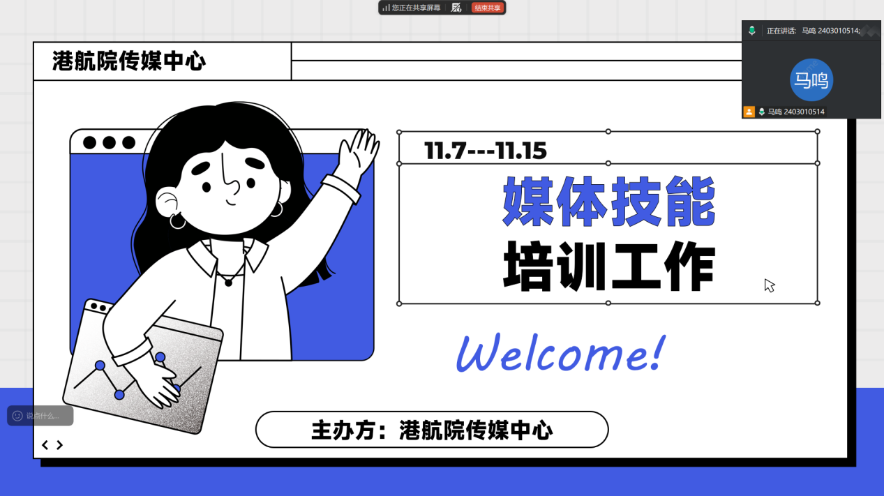 为全面提升学生运用新媒体工具的能力,11月7日到11月15日,北京赛车PK10 传媒中心面向北京赛车PK10 本科生,聚焦视频剪辑、平面设计及公众号运营等实用技能,开展了以“新媒体技能培训”为主题的线上专项培训。