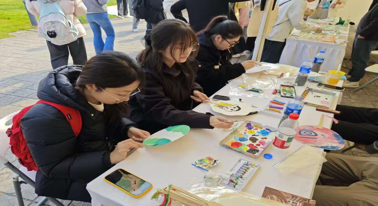 “心流造物院区”同步开展“描绘蓝图・未来愿景”心理绘画疗愈活动,设置团扇彩绘、环保帆布袋创作区,志愿者备好多种颜料工具,引导师生以笔墨勾勒美好愿景,让参与者在专注创作中释放压力,搭建起通往未来的“心灵彩虹桥”。