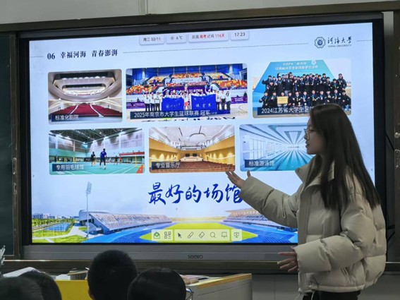 随后,宣讲队走进高三班级开展专场分享。队员们以 PPT 形式详解河海专业设置、科研成果与就业前景,分享高考备考技巧与心态调节方法,用真实案例消除学子们的升学困惑。互动环节中,同学们踊跃提问,队员们逐一回应并留下交流群号,为后续持续答疑搭建平台。