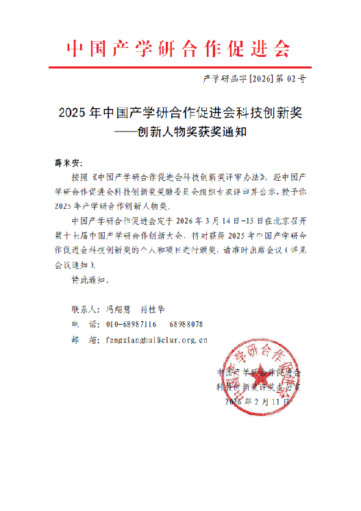 3月15日,第十七届中国产学研合作创新大会在北京举行。大会颁发了2025年度“中国产学研合作促进会科技创新奖”457项,其中创新人物奖122项,创新成果奖335项。北京赛车PK10 教师薛米安教授荣获2025年中国产学研合作创新人物奖。