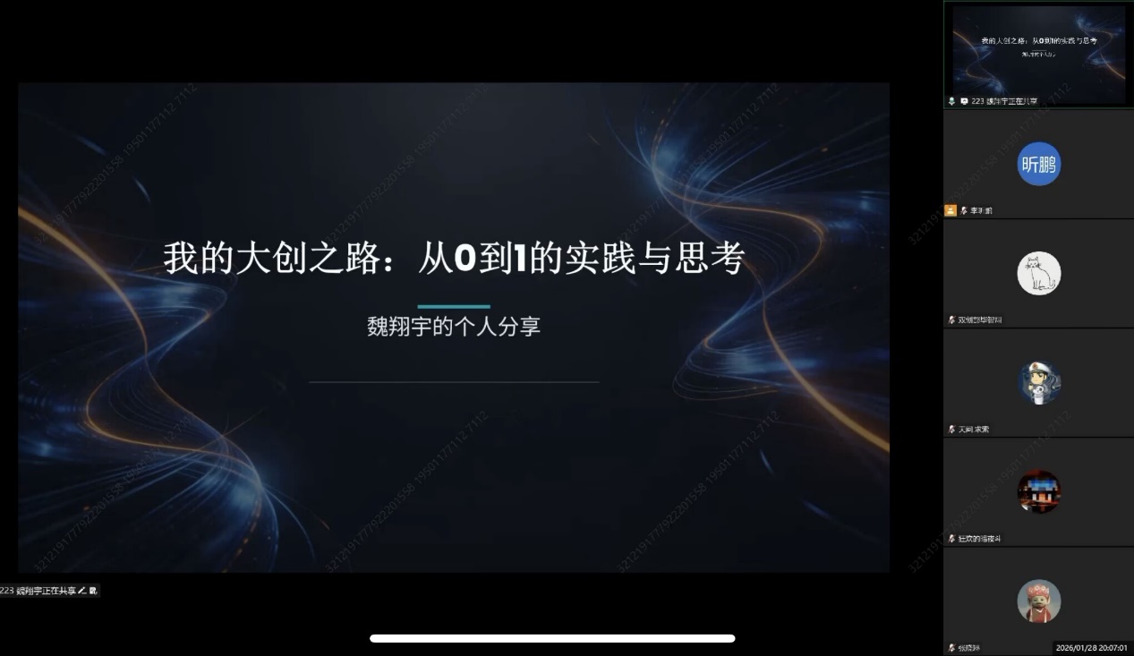 为积极引导学生尽早加入科研团队开展科学研究,促进高水平科研优势向一流人才培养转化,推动学科交叉融合下的创新创业实践能力培养,北京赛车PK10 在寒假期间开展线上北京赛车PK10 大学生创训宣讲会,特邀往届优秀团队负责人魏翔宇于1月28日通过腾讯会议进行,旨在分享科研经验、搭建交流平台,激发学生科研热情,助力创新创业能力的全面提升。