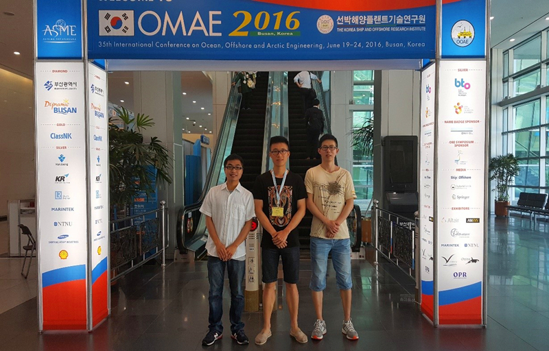 The 35th International Conference on Ocean, Offshore and Arctic Engineering (OMAE2016) was held in Busan, Korea from June 19-24, 2016. Graduate students Yao Wu, Mingkai Guan and Huanghao Hu participated in the conference and gave oral presentations titled “Net Bottom Sediment Transport Related with Residual Current in the Pearl River Delta, South China”, “Sediment Rating Curves for Suspended Sediment Flux Estimation in the Pearl River Delta” and “Simulating the Flow and Sediment Transport in the River Network”, respectively.